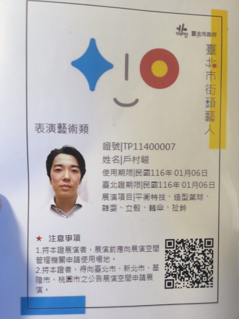 ※台湾のアーティストビザを保持してます。